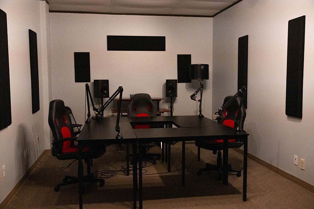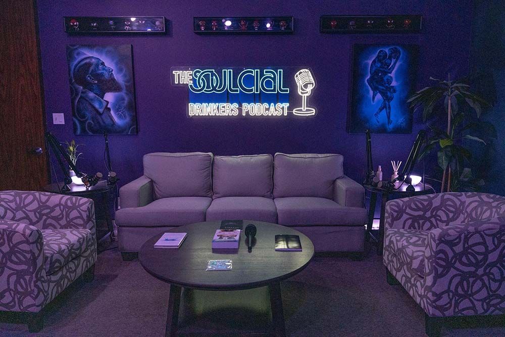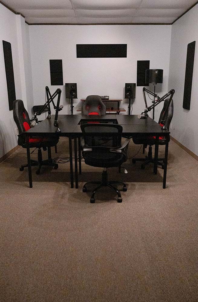 But our podcast room is more than just tech. We've designed a comfortable and inspiring environment to fuel your creativity. Cozy furniture sets the mood for engaging conversations, while sound-dampening walls ensure pristine audio even when you get animated. Whether you're hosting solo episodes or bringing in guests for dynamic discussions, our space adapts to your podcast's unique vibe.